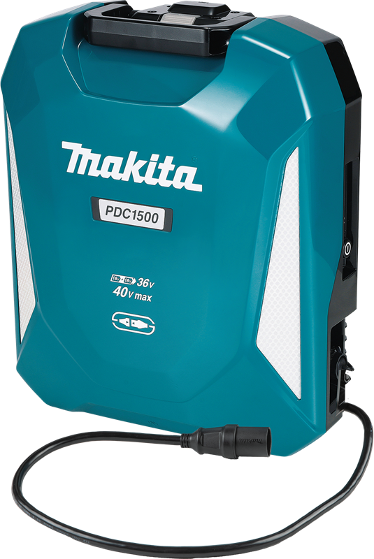 The Makita ConnectX 1500Wh Portable Power Supply builds upon the brand’s portable power lineup. It’s compatible with select products on the ConnectX platform, with separate adapters available for compatibility with select 40V XGT and 18Vx2 (36V) LXT tools. Precise runtimes vary by product, but compared to the previous 1200Wh version, the PCD1500 provides a longer time between charges. For instance, where the 1200Wh model can run a CBU04 backpack blower for 1.5 hours, the 1500Wh Portable Power Supply gets you 2 hours of trigger time. When the battery levels are depleted, the PDC1500 recharges fully in 450 minutes using an AC power supply (sold separately).