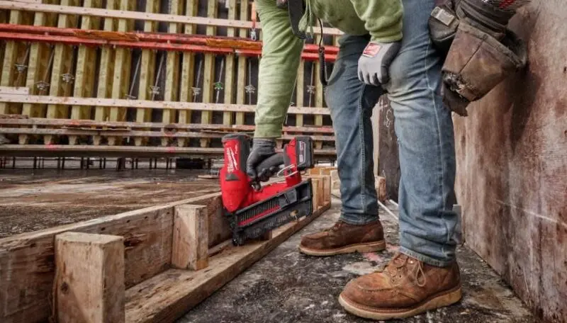 If you’re used to the feel of a pneumatic nailer, Milwaukee’s M18 Fuel Duplex Nailer replicates the experience and performance of air tools thanks to nitrogen air spring technology. It speeds up concrete framework assembly and other framing jobs, firing up to 4 nails per second.