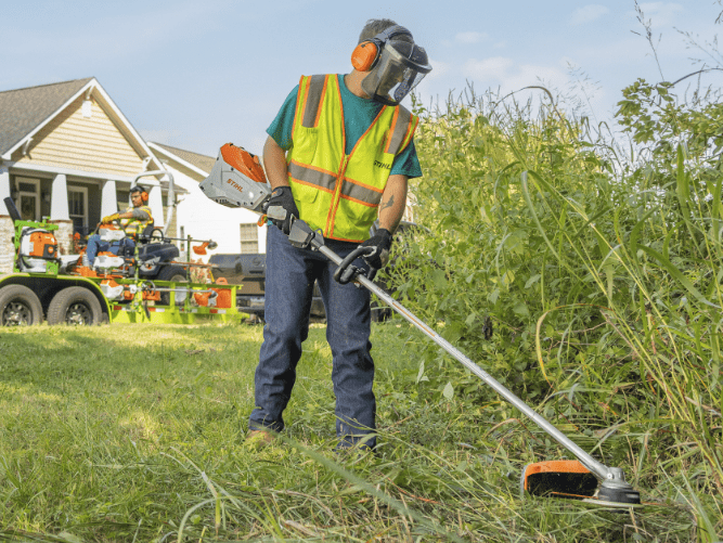 The Stihl FSA 200 R string trimmer delivers up to 60% more power than the previous model thanks to a high-torque gearbox. With the gearing upgrade, the trimmer is able to use an 18-inch head. This means landscape Pros looking to switch to battery power no longer need to sacrifice cutting width or power to do so.