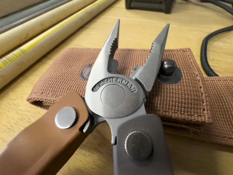 This multi-tool comes in three seasonal colorways: Mossy Slate, Heathered Cranberry, and Burnt Sienna (the model I’m reviewing). If you’re after the traditional look, you can also find the Leatherman Bond in full stainless steel.