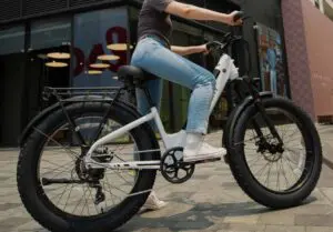 Why I Recommend It: Fat tire bikes used to be reserved for the beach, but with eBikes, that’s no longer the case. The PuckiPuppy Samoyed commuter e-bike comes equipped with a 960W peak motor. It delivers a top pedal-assisted speed of 28 mph and has a maximum range of 60 miles thanks to a 48V 15Ah removable battery. A front suspension fork gives you a smooth ride on the 26-inch fat tires. An LCD color display shows your speed, battery level, and other ride data. The bike also includes a 7-speed Shimano derailleur, a thumb throttle, and wire-pull disc brakes. Get more info here.