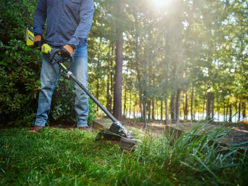Additionally, you can configure the cutting swath between 14 and 16 inches, and that 16-inch width comes in handy for trimming larger areas. Ryobi tells us you can expect runtimes of up to 45 minutes with a 4.0Ah battery.